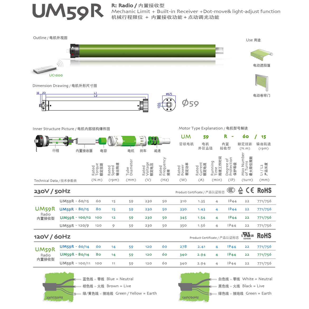 R:Radio/內置接收型 Mechanic Limit+Integrated radio control+jogging & tilt/機械行程限位+內置接收器+點動調光功能