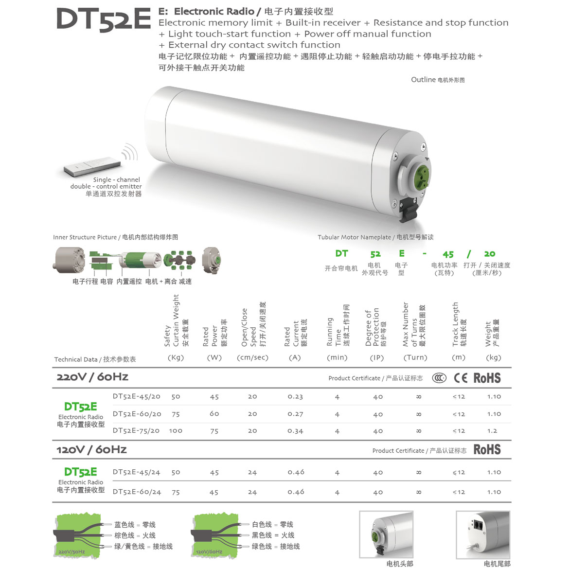 電子記憶限位功能+遇阻停止功能+停電手拉功能+可外接干觸點(diǎn)開關(guān)功能