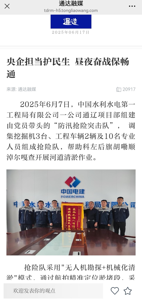 【通達融媒】:央企擔當護民生 晝夜奮戰保暢通——通遼項目部積極參與地方抗洪搶險,進行河道清淤 |