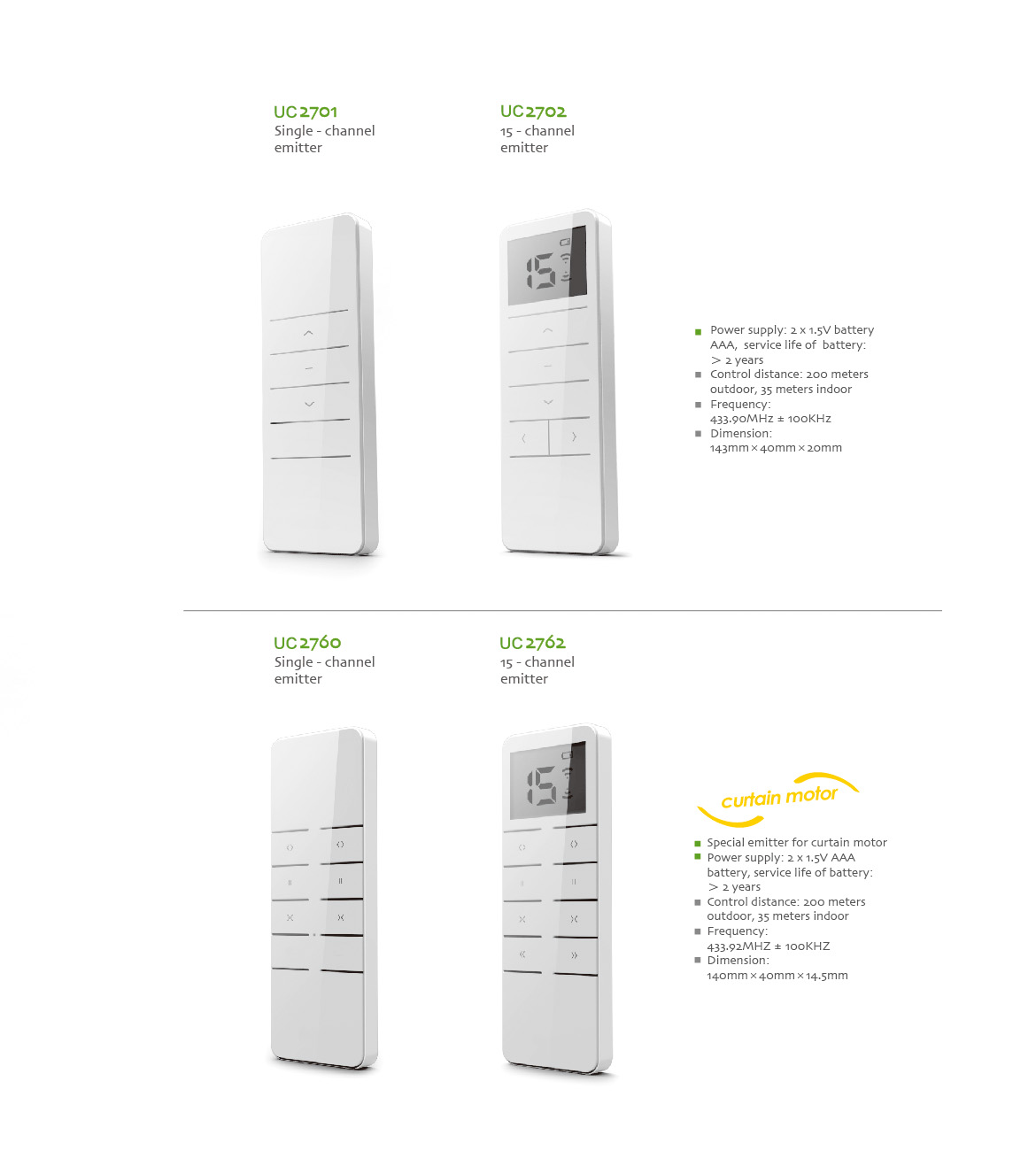 Single-channel emitter / 單通道雙控發射器 15-channel emitter / 15通道雙控發射器